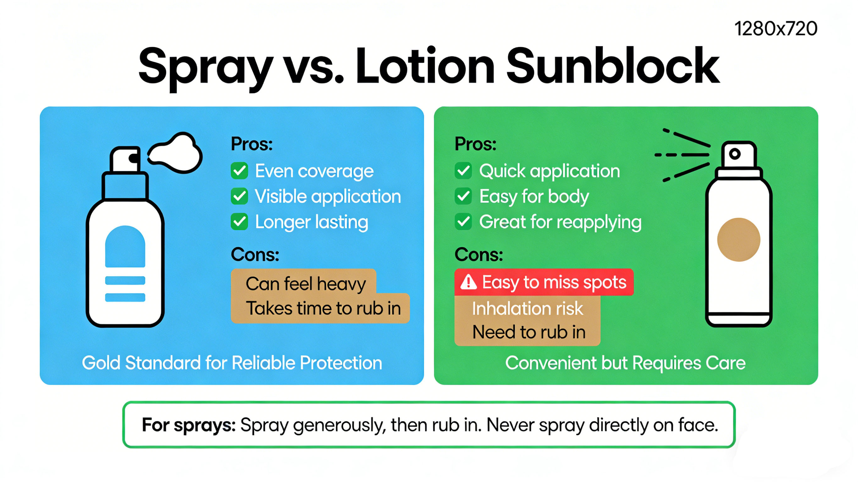 - Con: The "Wind Factor" and Thin Application. Research shows people often apply only 25% of the needed amount when using a spray.